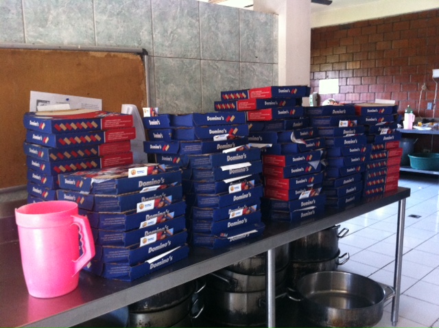 Dominos donated 80 pizzas to us! Dude, pizza here is expensive. A medium runs about Q80, so a donation like this is worth Q6400 (around $850!) It was a special treat for the kids and volunteers :) We all got to eat our fill.